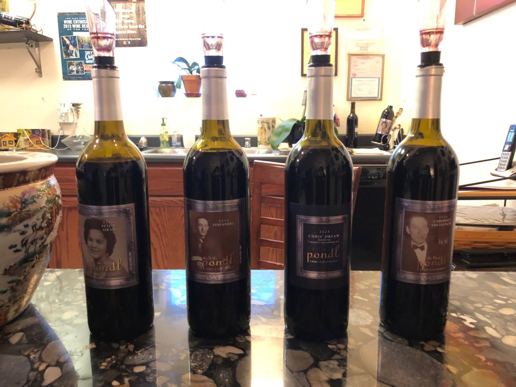 Pondl is a small winery, founded by Patrick O’Neill and David Lujan. David was behind the bar when we walked in. The name “Pondl” comes from their initials. Sadly, Patrick passed away earlier this year. David shared some wonderful stories about Patrick’s life and their visits to Ireland, Patrick’s home country, as well as some of David’s adventures. By the time we left, we felt like we had met Patrick.