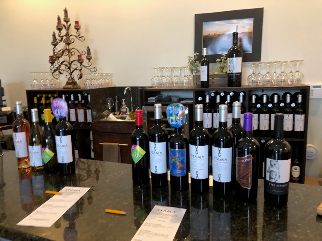 Walked into Stama Winery and was greeted by Sayde. I was immediately intrigued by her name as “Sadie” is my mother’s name and I rarely meet anyone with the same name (different spelling, in this case). There was another group tasting when we arrived, but Sayde easily bounced back and forth, making sure everyone had what they needed.