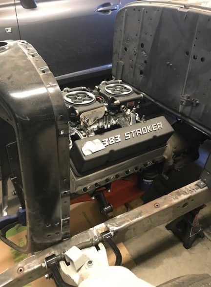 Ok, productive day… Finished up the rear end supports and reset the top hats in the front. I had to partially channel the frame because the upper control arm was rubbing the frame. No worries–got it. Now I need to get the motor mounts set. Sneak Peak… 383 Stroker with dual Fi-Tech EFI quads. I will need this truck to take Kari downtown and we do not want to take all day to get there, right!