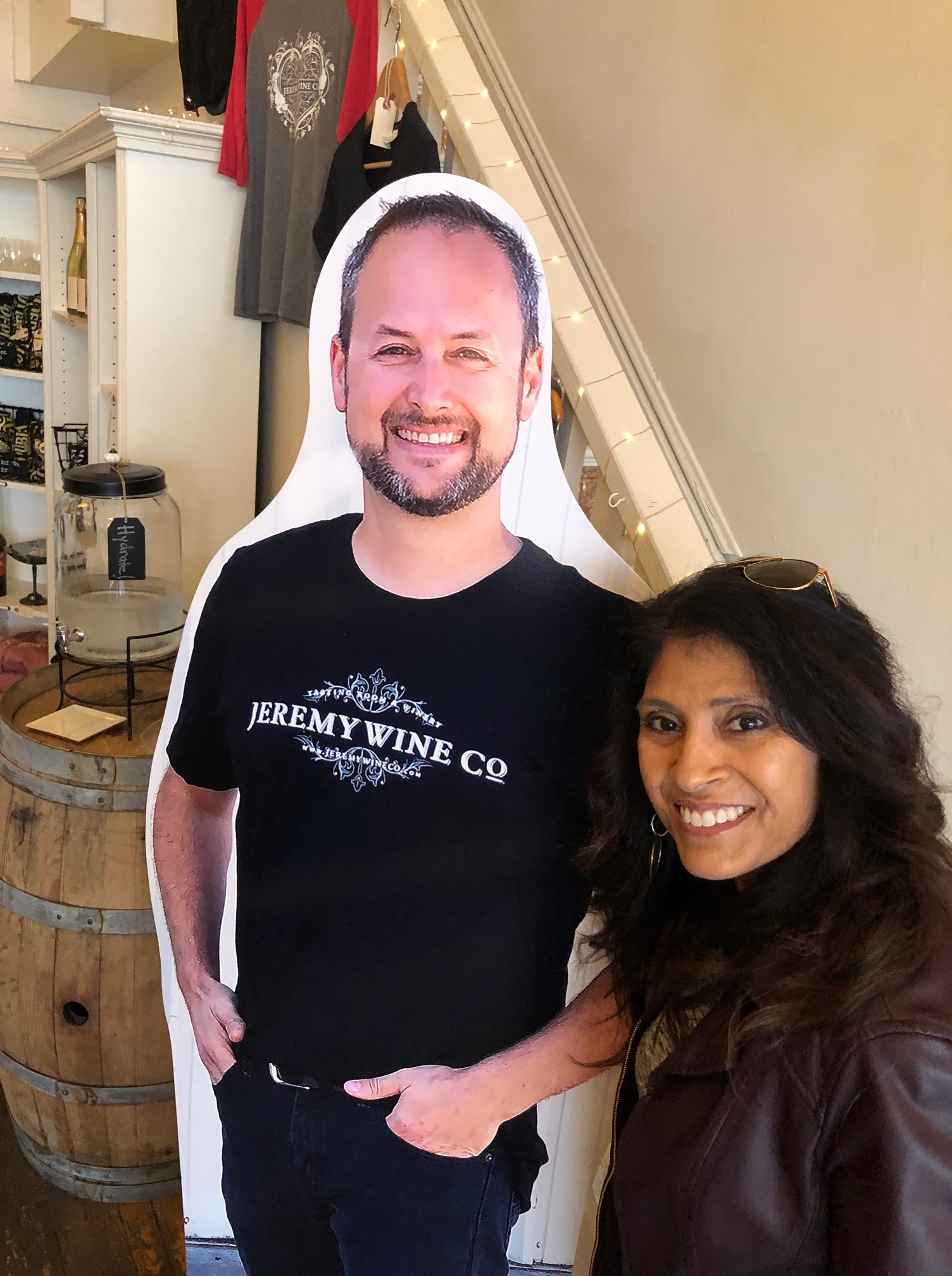 Mandy greeted us with a warm smile, and set us up with a tasting. They have a very cute tasting room, complete with a life-size cut-out of the owner, Jeremy.