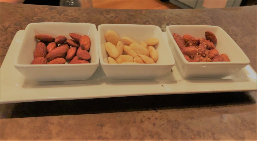 They also have a wide variety of small plates, as well as panini sandwiches. We had a plate of almonds. If we didn’t already have dinner plans, we would have tried out more of the food.